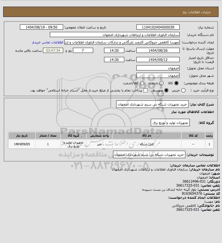 نام دستگاه خریدار:سازمان فناوری اطلاعات و ارتباطات شهرداری اصفهان