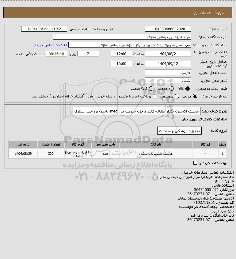 نام دستگاه خریدار:مرکز اموزشی درمانی نمازی