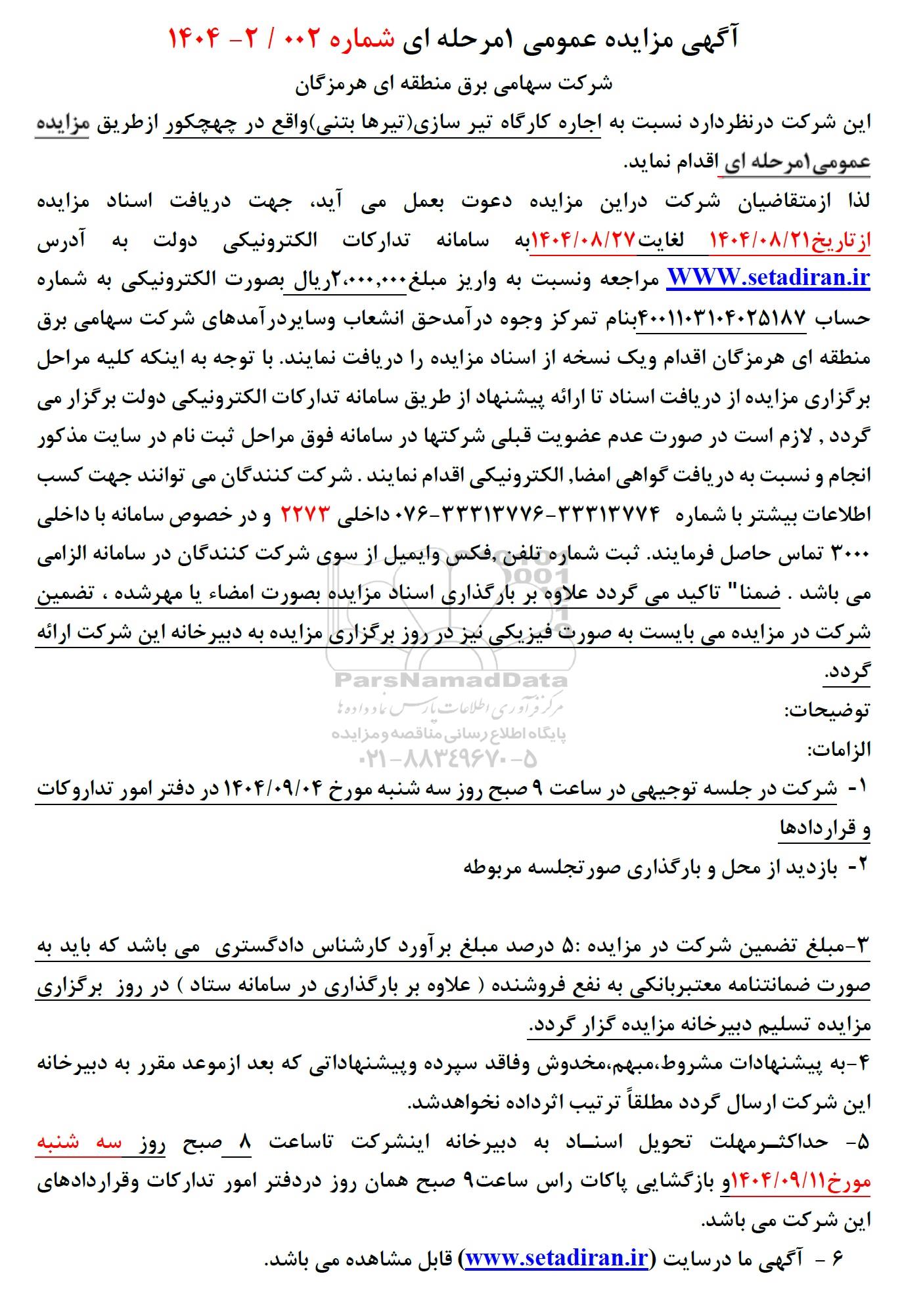 آگهی مزایده عمومی مرحله ای شماره 1404-2.002