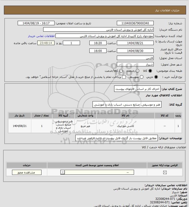 نام دستگاه خریدار:اداره کل اموزش و پرورش استان فارس