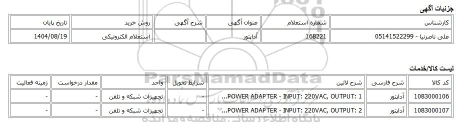 علی ناصرنیا - 05141522299168221آداپتوراستعلام الکترونیکی1404/08/19