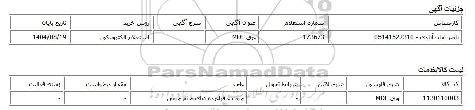 ناصر امان آبادی - 05141522310173673ورق MDFاستعلام الکترونیکی1404/08/19