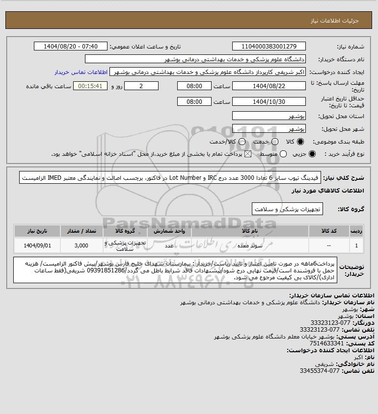 نام دستگاه خریدار:دانشگاه علوم پزشکی و خدمات بهداشتی درمانی بوشهر