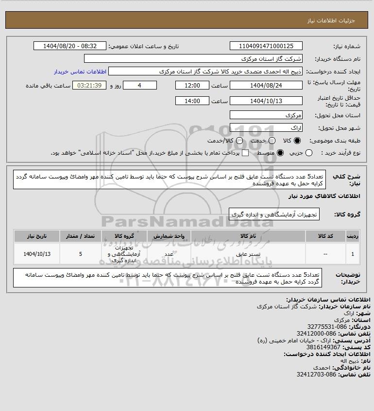 نام دستگاه خریدار:شرکت گاز استان مرکزی