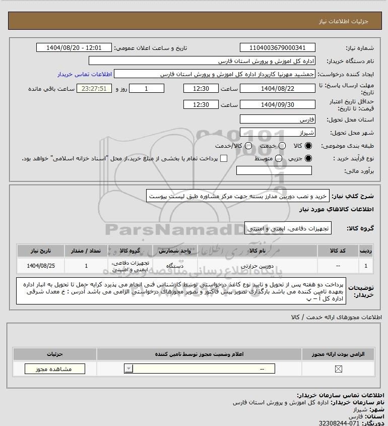 نام دستگاه خریدار:اداره کل اموزش و پرورش استان فارس