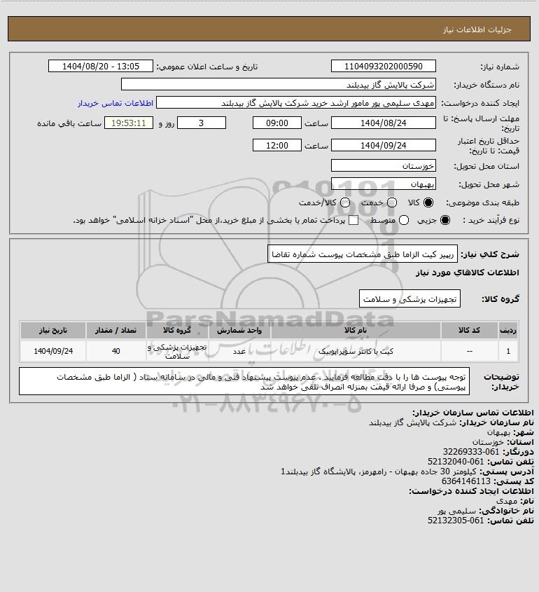 شرح کلی نیاز: ریپیر کیت الزاما طبق مشخصات پیوست شماره تقاضا