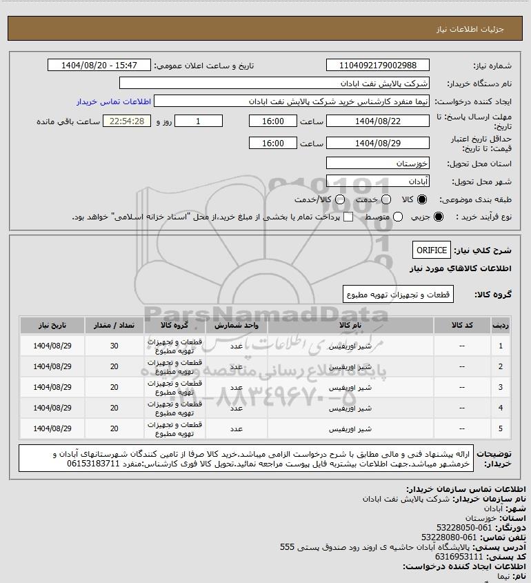نام سازمان خریدار: شرکت پالایش نفت ابادان