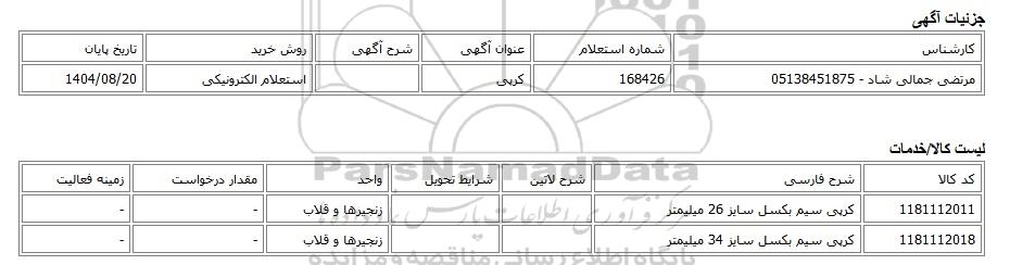 | مرتضی جمالی شاد - 05138451875 | 168426 | کرپی | استعلام الکترونیکی | 1404/08/20 |