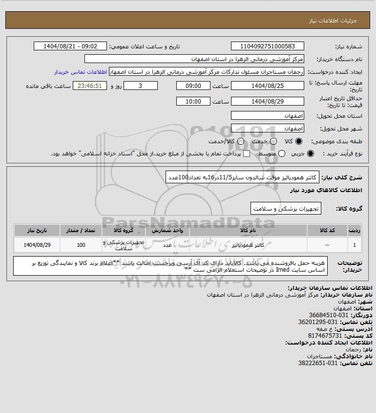 نام دستگاه خریدار:مرکز آموزشی درمانی الزهرا در استان اصفهان