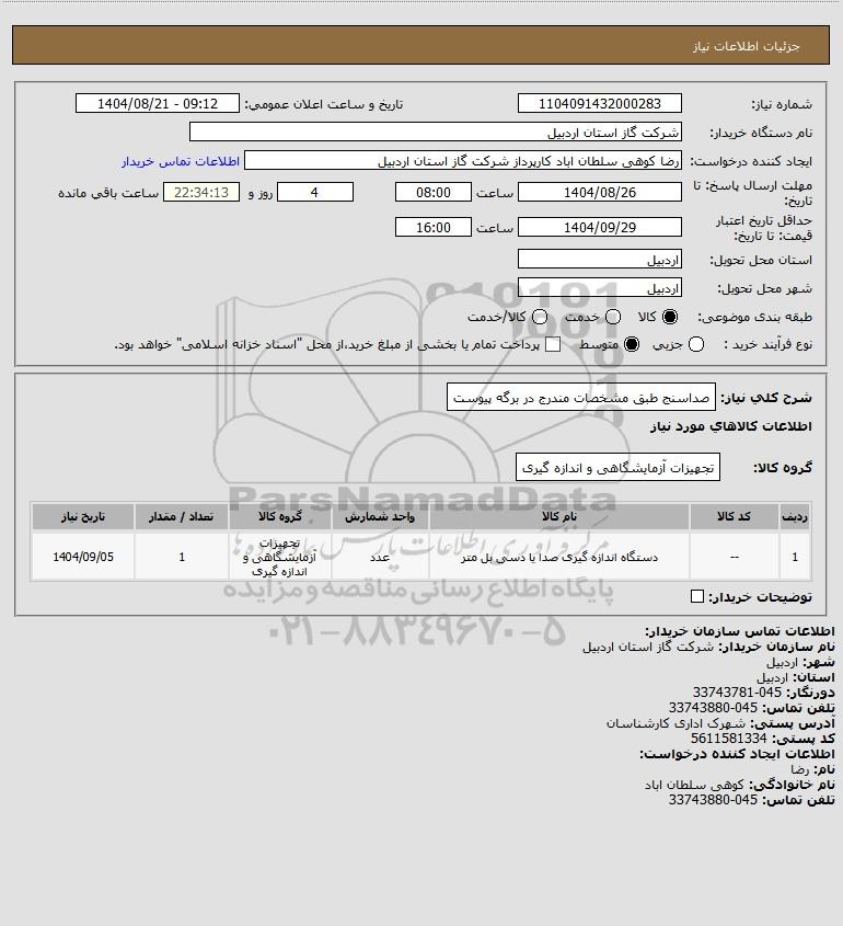 شرح کلی نیاز: صداسنج طبق مشخصات مندرج در برگه پیوست