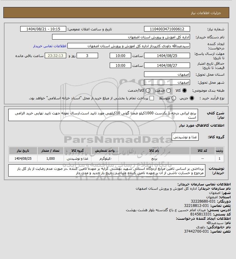 نام دستگاه خریدار:اداره کل اموزش و پرورش استان اصفهان
