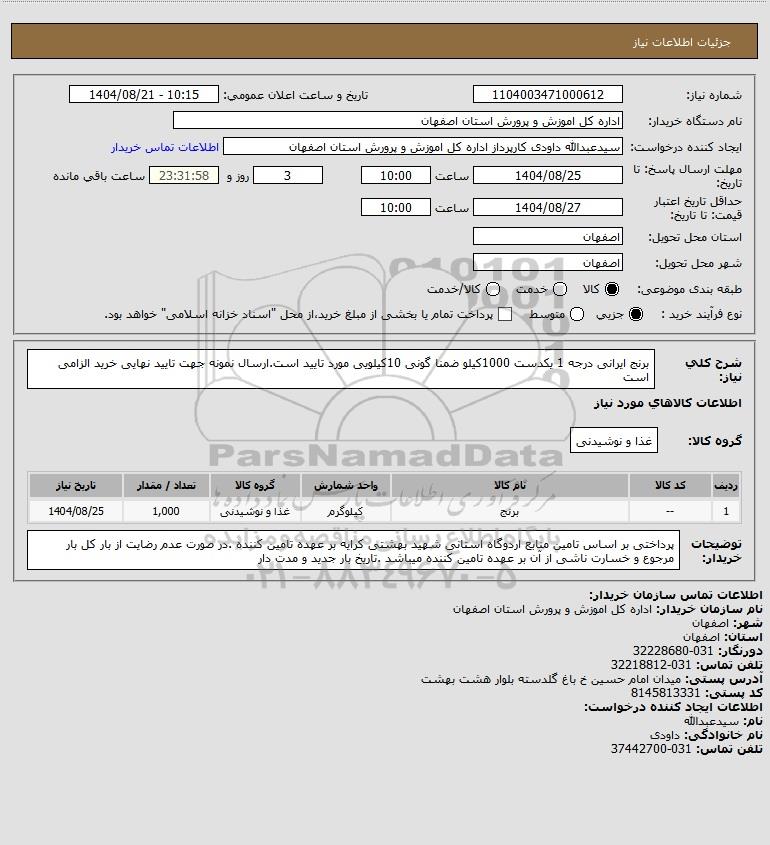 1 -- برنج کیلوگرم غذا و نوشیدنی 1,000 1404/08/25