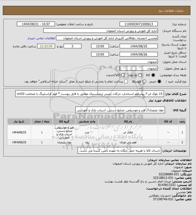 نام دستگاه خریدار:اداره کل اموزش و پرورش استان اصفهان