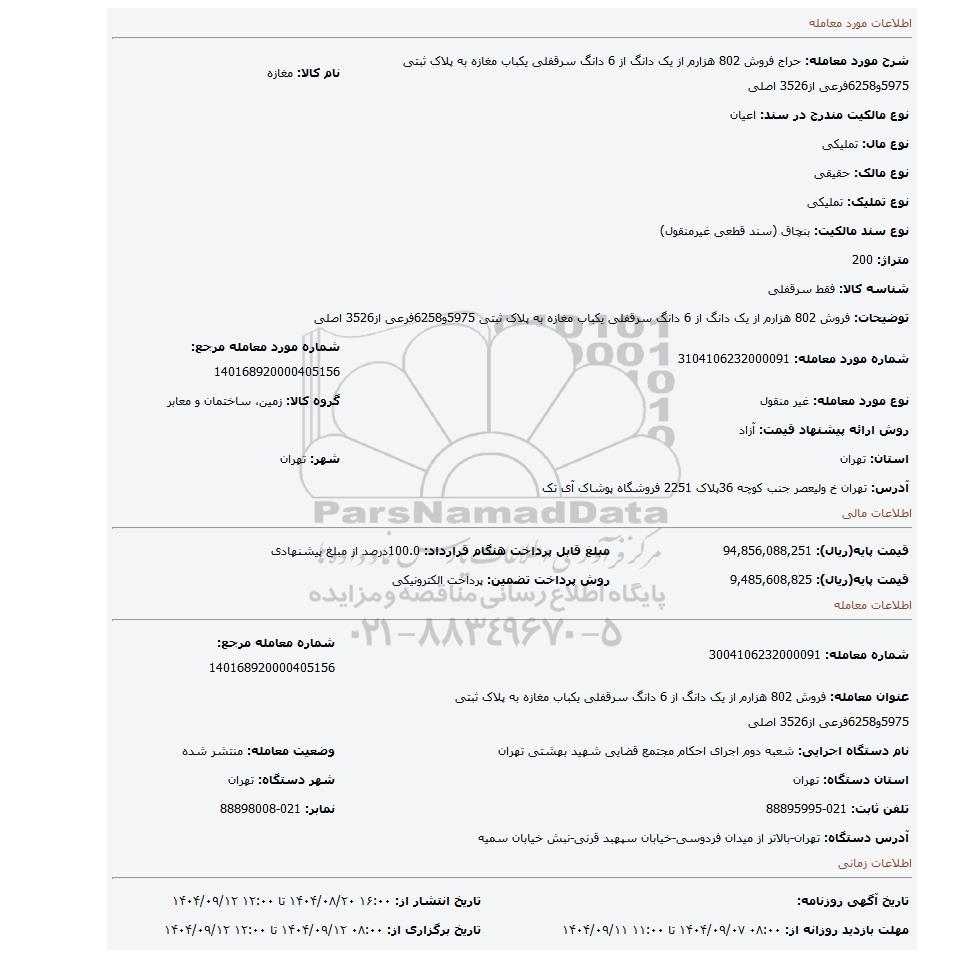 | شماره معامله: 3004106232000091 | شماره معامله مرجع: 140168920000405156 | |