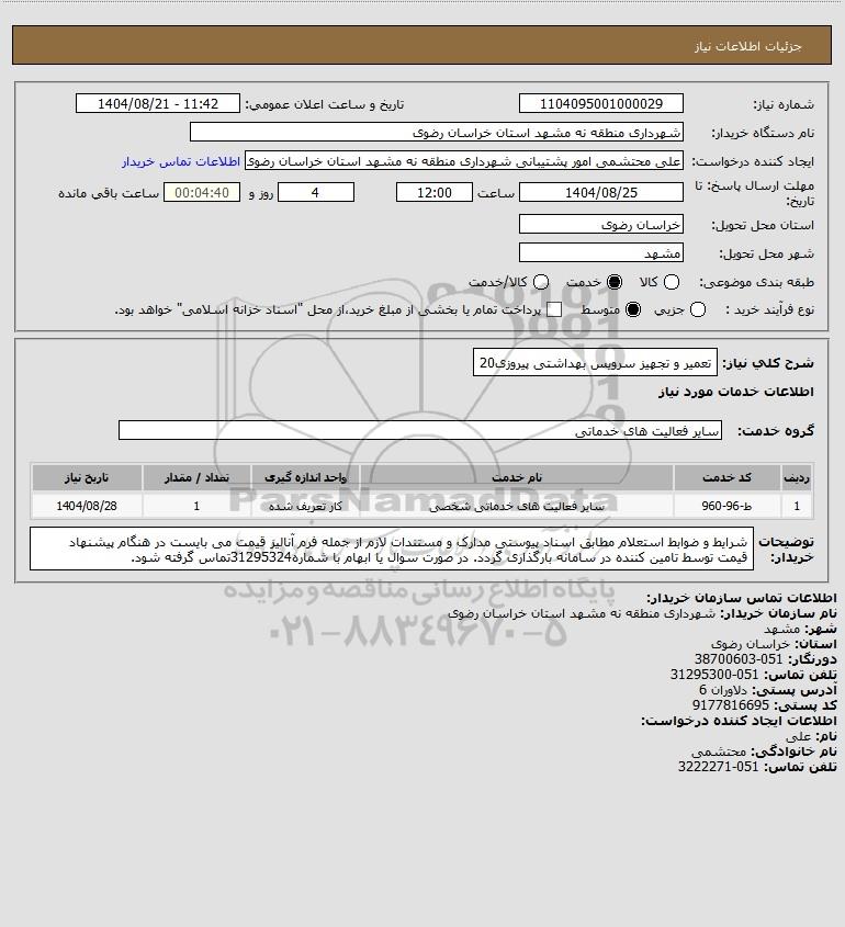شرح کلی نیاز: تعمیر و تجهیز سرویس بهداشتی پیروزی20