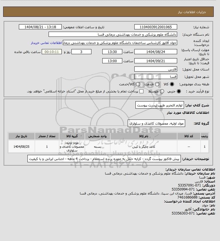 نام دستگاه خریدار:دانشگاه علوم پزشکی و خدمات بهداشتی درمانی فسا