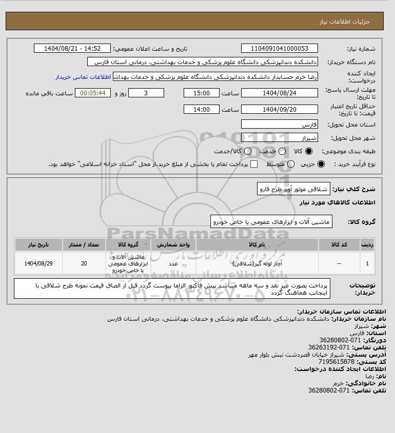 نام سازمان خریدار: دانشکده دندانپزشکی دانشگاه علوم پزشکی و خدمات بهداشتی، درمانی استان فارس