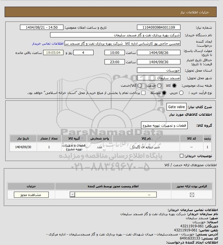 نام سازمان خریدار: شرکت بهره برداری نفت و گاز مسجد سلیمان