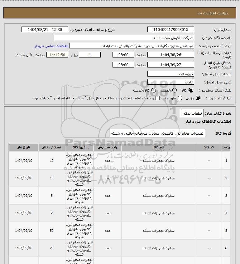 5 -- سابرک تجهیزات شبکه عدد تجهیزات مخابراتی، کامپیوتر، موبایل، ملزومات جانبی و شبکه 50 1404/09/10