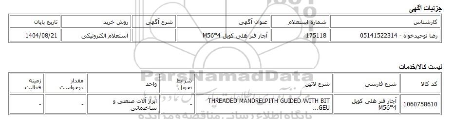 رضا توحیدخواه - 05141522314175118آچار فنر هلی کویل M56*4استعلام الکترونیکی1404/08/21