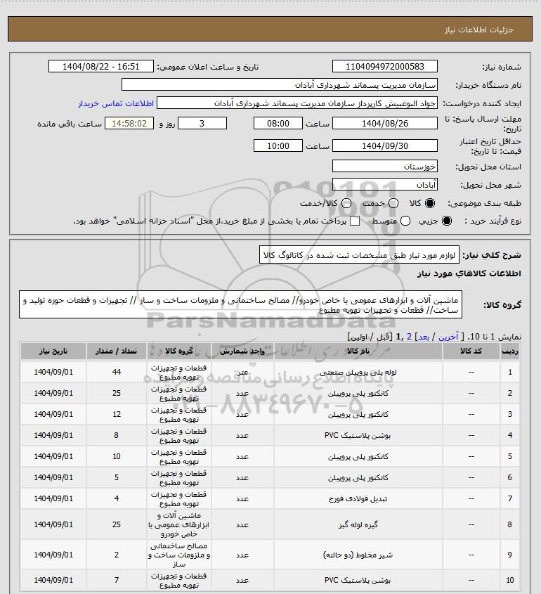 نام دستگاه خریدار:سازمان مدیریت پسماند شهرداری آبادان