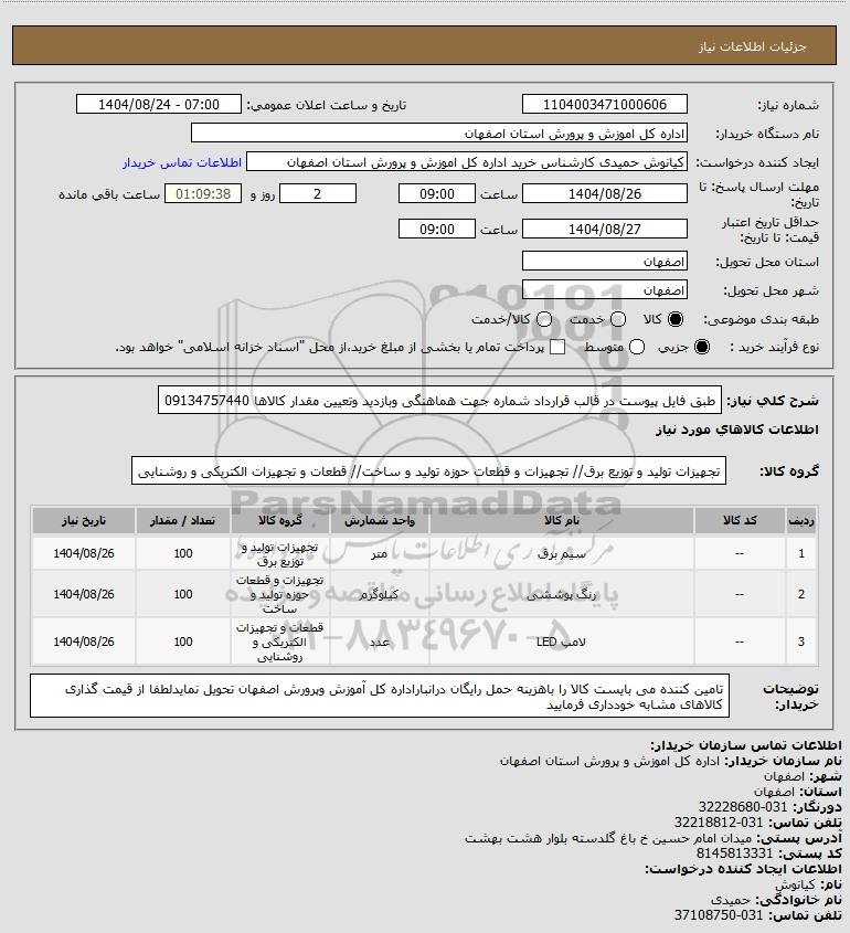 نام دستگاه خریدار:اداره کل اموزش و پرورش استان اصفهان