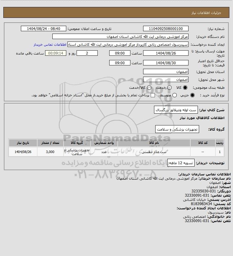 نام دستگاه خریدار:مرکز اموزشی درمانی ایت الله کاشانی استان اصفهان