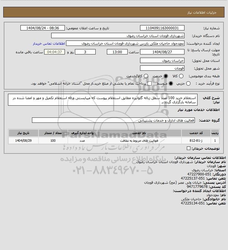 نام سازمان خریدار: شهرداری قوچان استان خراسان رضوی