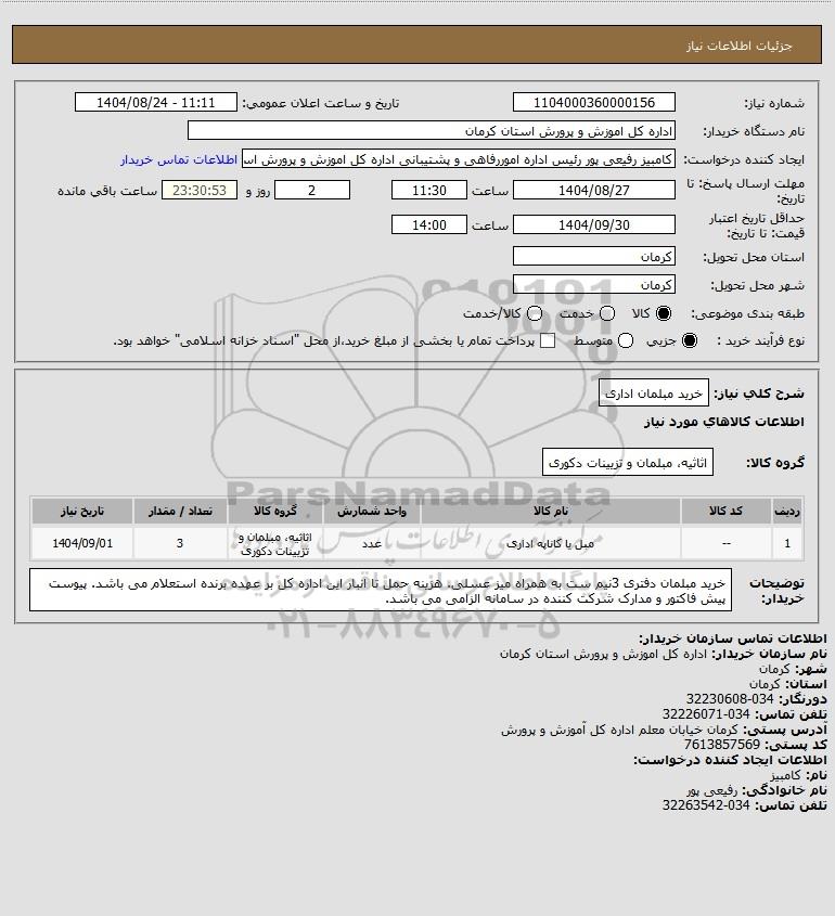 نام دستگاه خریدار:اداره کل اموزش و پرورش استان کرمان