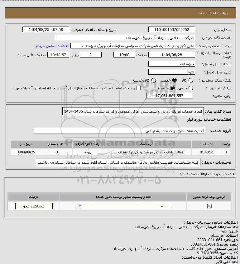 نام دستگاه خریدار:شرکت سهامی سازمان آب و برق خوزستان