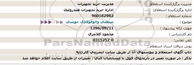 اداره برگزارکننده استعلام اداره خرید تجهیزات هیدرولیک