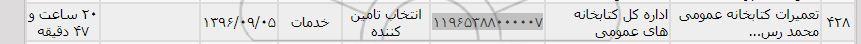 | تعمیرات کتابخانه عمومی محمد رس... | اداره کل کتابخانه های عمومی |