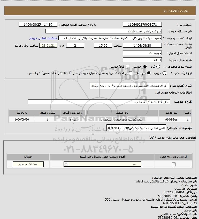 شرح کلی نیاز: اجرای عملیات فوندانسیون ترانسفورماتور برق در ناحیه بوآرده