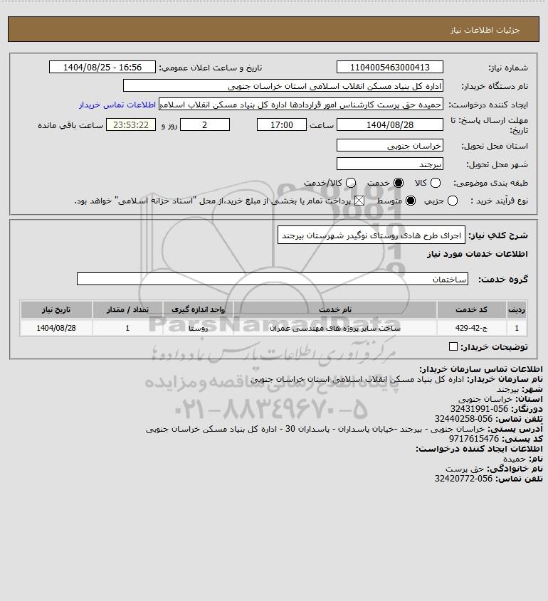 نام دستگاه خریدار:اداره کل بنیاد مسکن انقلاب اسلامی استان خراسان جنوبی