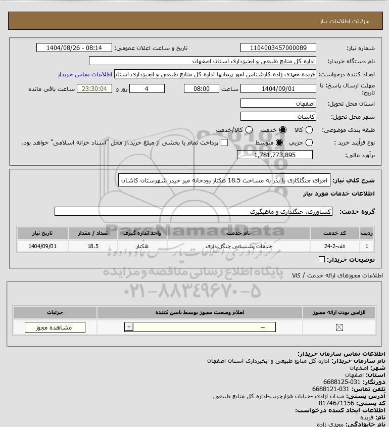 شرح کلی نیاز: اجرای جنگلکاری با بذر به مساحت 18.5 هکتار رودخانه میر حیدر شهرستان کاشان