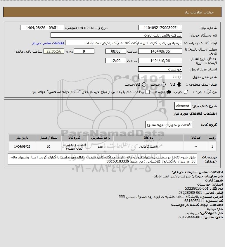 نام سازمان خریدار: شرکت پالایش نفت ابادان