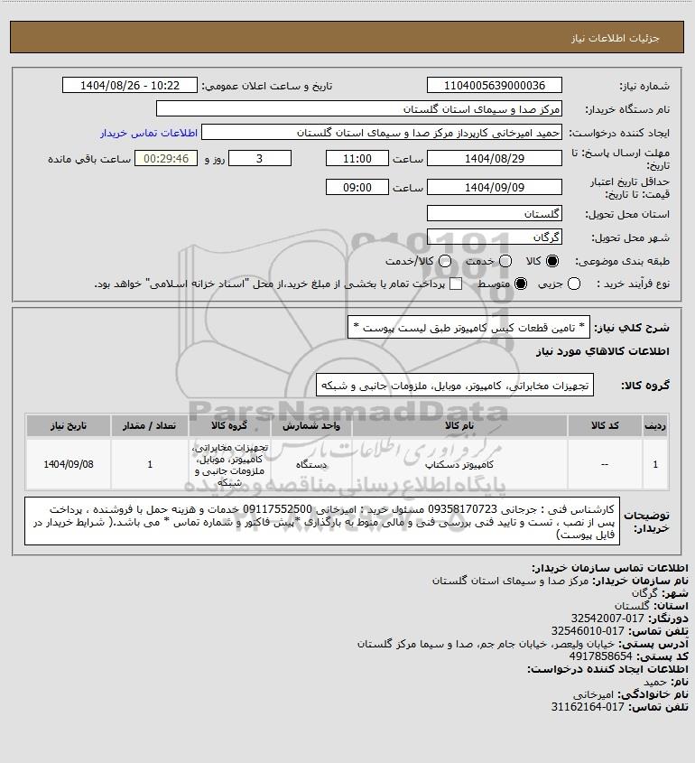 نام دستگاه خریدار:مرکز صدا و سیمای استان گلستان