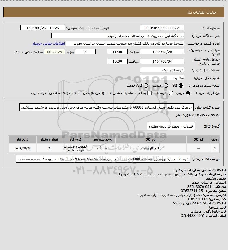 نام دستگاه خریدار:بانک کشاورزی مدیریت شعب استان خراسان رضوی