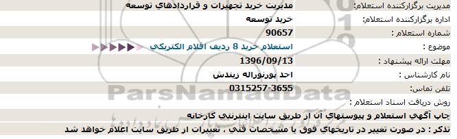 موضوع : استعلام خرید 8 ردیف اقلام الکتریکی