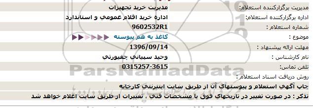 اداره برگزارکننده استعلام: اداره خرید اقلام عمومی و استاندارد