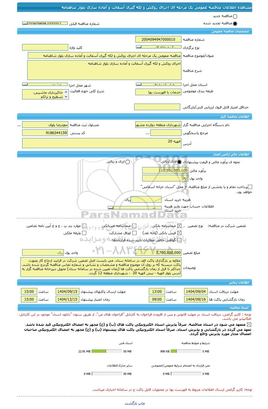 مناقصه مناقصه عمومی یک مرحله ای اجرای روکش و لکه گیری آسفالت و آماده سازی بلوار شاهنامه, مناقصه، مناقصه عمومی یک مرحله ای اجرای روکش و لکه گیری آسفالت و آماده سازی بلوار شاهنامه