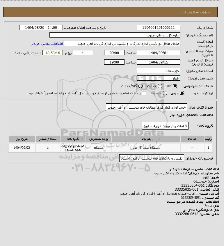 شرح کلی نیاز: خرید لوازم کولر گازی مطابف فرم پیوست راه آهن جنوب