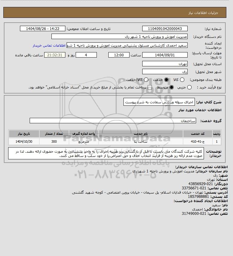 نام سازمان خریدار: مدیریت اموزش و پرورش ناحیه 1 شهر ری