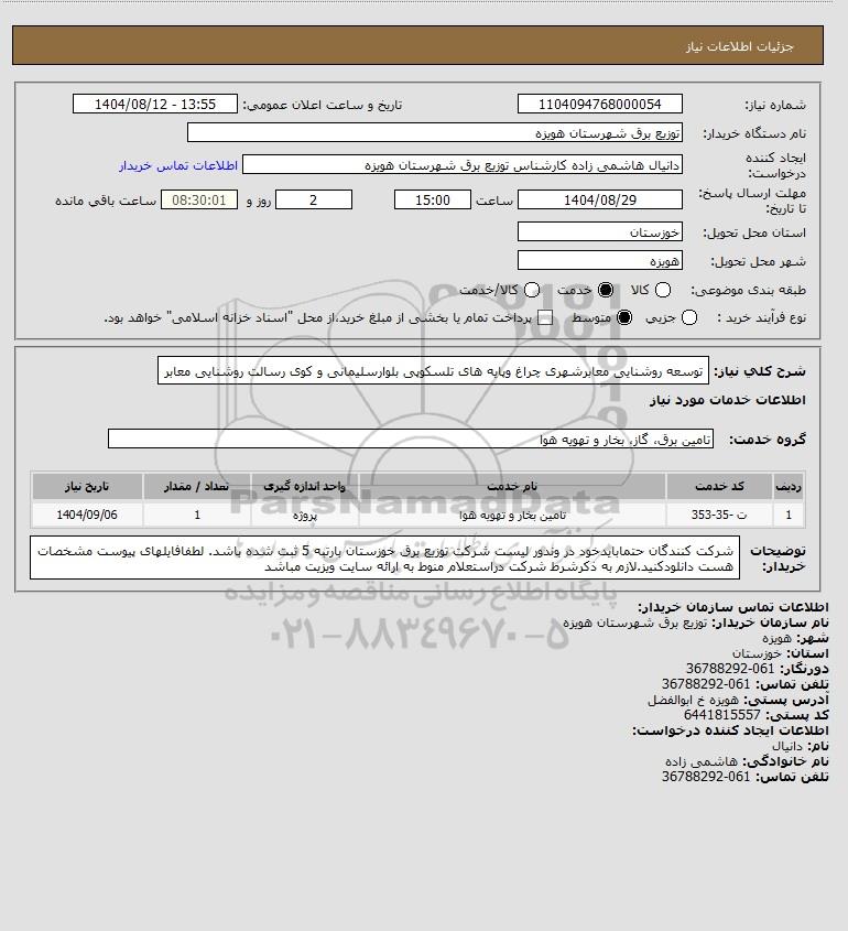 نام سازمان خریدار: توزیع برق شهرستان هویزه