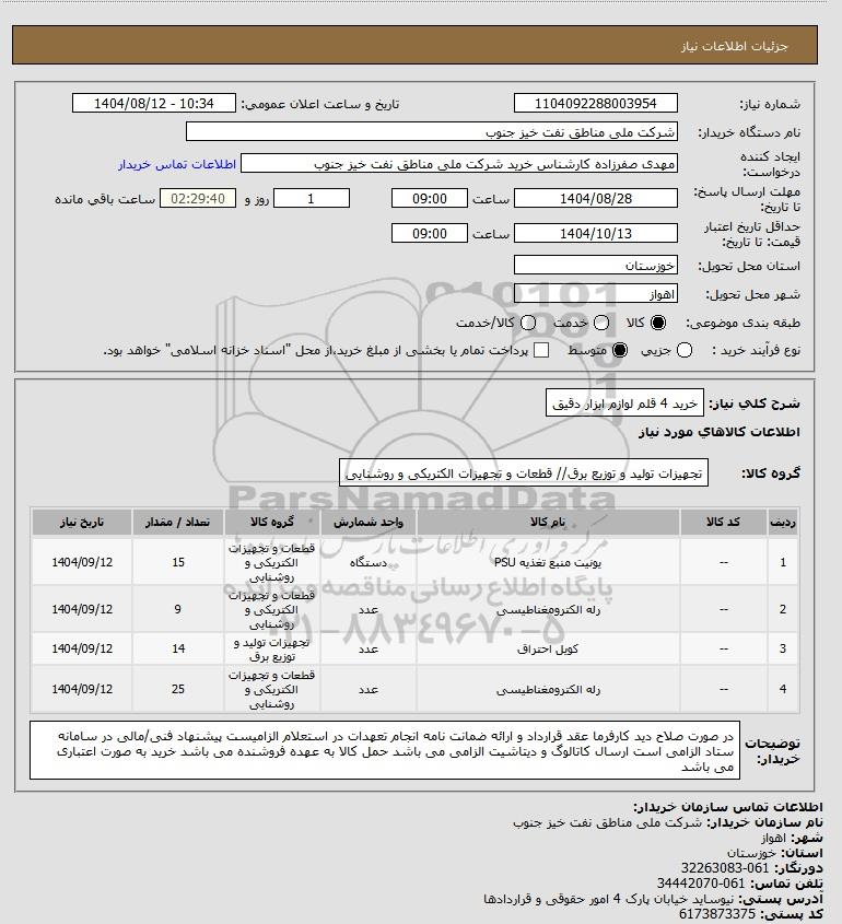 نام دستگاه خریدار:شرکت ملی مناطق نفت خیز جنوب
