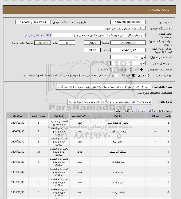 شرح کلی نیاز: خرید 15 قلم قطعات ابزار دقیق مشخصات کالا طبق شرح پیوست ارائه می گردد