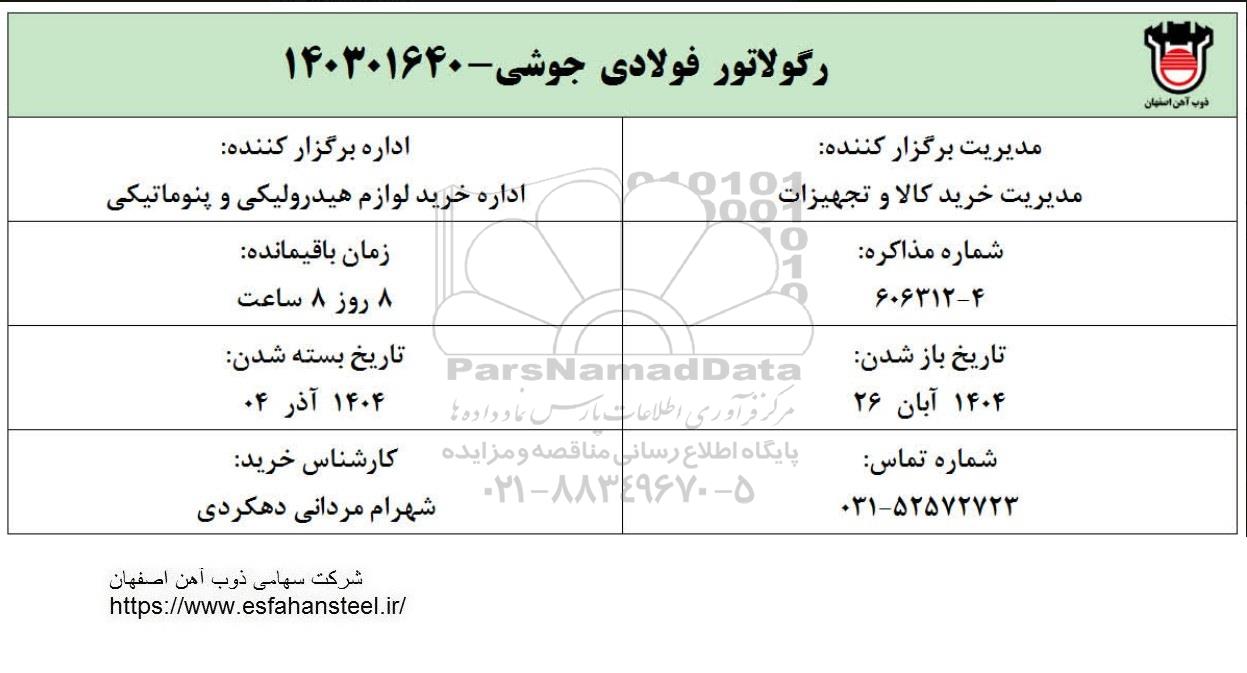 اداره برگزار کننده: اداره خرید لوازم هیدرولیکی و پنوماتیکی |