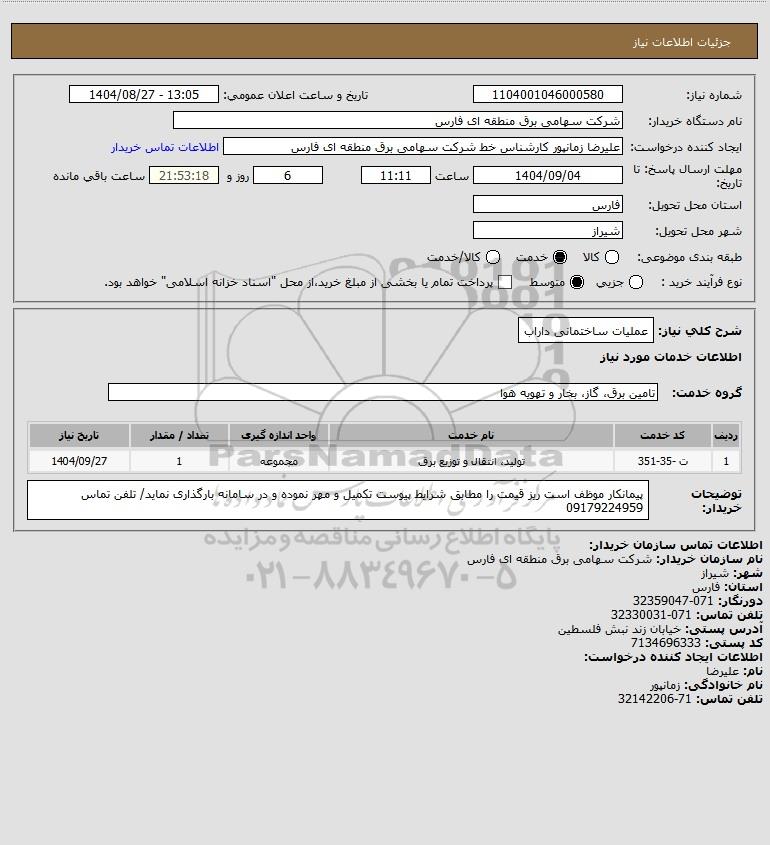 شرح کلی نیاز: عملیات ساختمانی داراب