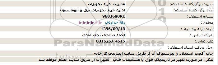 اداره برگزارکننده استعلام: اداره خرید تجهیزات برق و اتوماسیون
