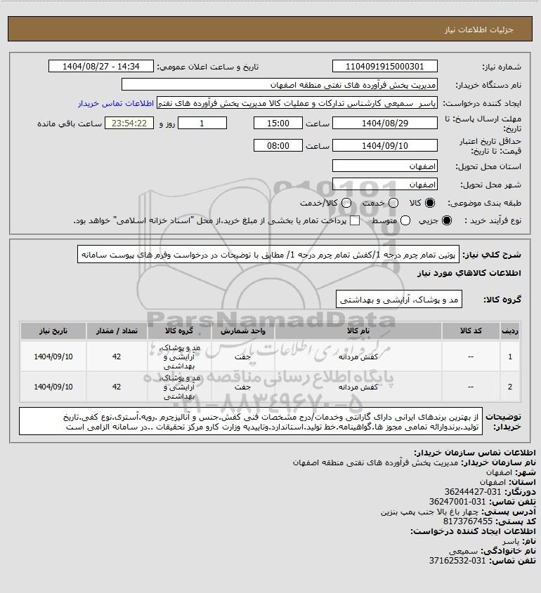 نام دستگاه خریدار:مدیریت پخش فرآورده های نفتی منطقه اصفهان